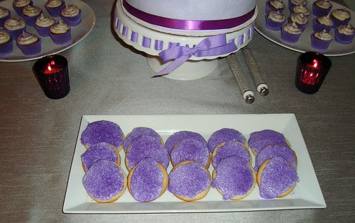 I also made some sugar cookies cut into circles. These were iced with royal icing and covered in purple sugar. Everything came out really well and looked really nice set up. The party was as much of a success as the desserts were.